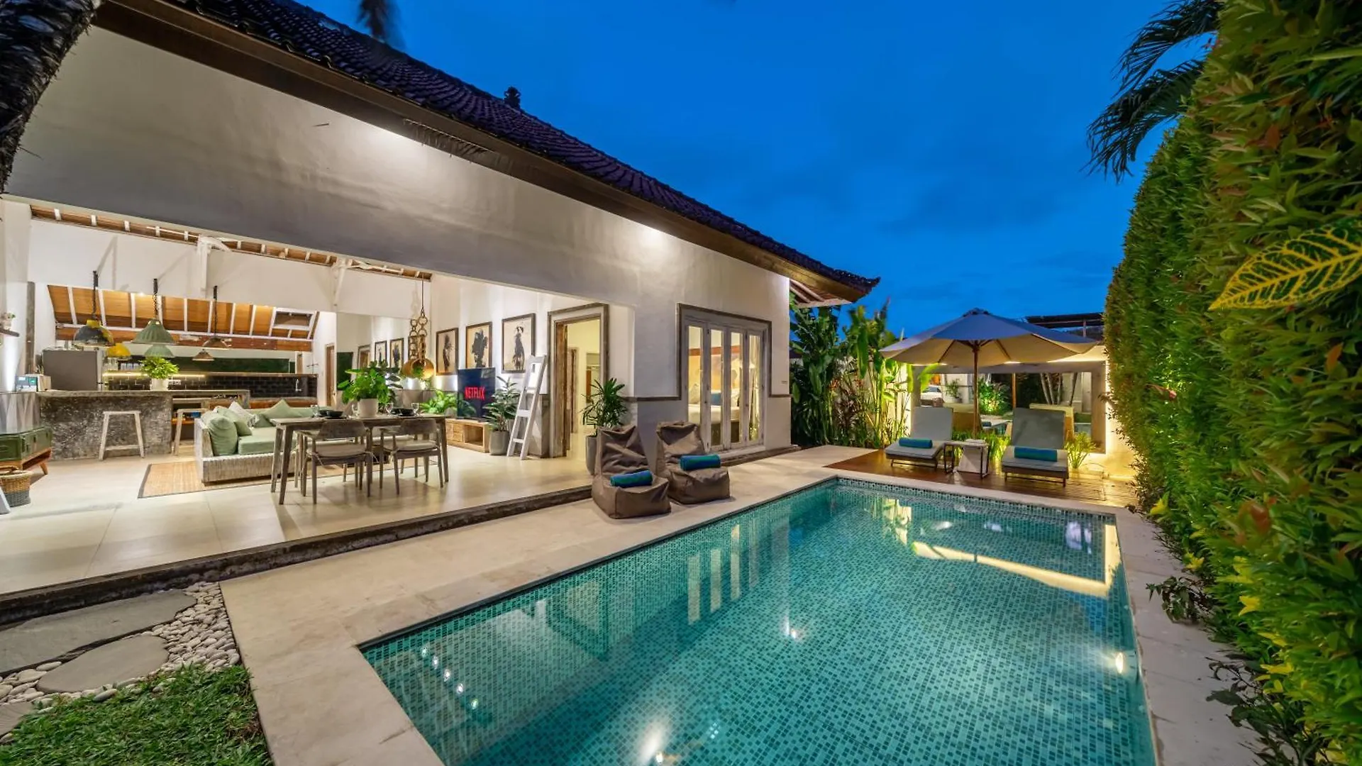Cozinha totalmente equipada, juntamente com sala de jantar, estão disponíveis para refeições. A cozinha também dispõe de microondas, chaleira elétrica e refrigerador. Os hóspedes encontrarão 1/15 Coffee Seminyak a 5 minutos de distância a pé. O aeroporto Internacional de Bali fica a 15 km desta propriedade e a paragem Gardin Bistro - Line 4 fica a 10 minutos de distância a pé. A propriedade tem piscina privada, juntamente com solário e terraço ensolarado.